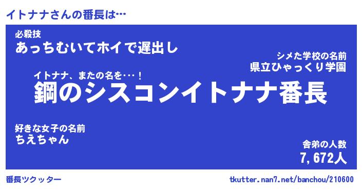 | 意味不明あだ名 | 『ペロリンイトナナ』『永久保存イトナナ』 |
