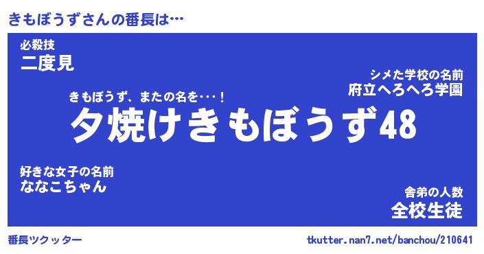 | ヒーロー風カッコイイあだ名 | 『スーパーキモボウズ』『幻影騎士キモ』 |