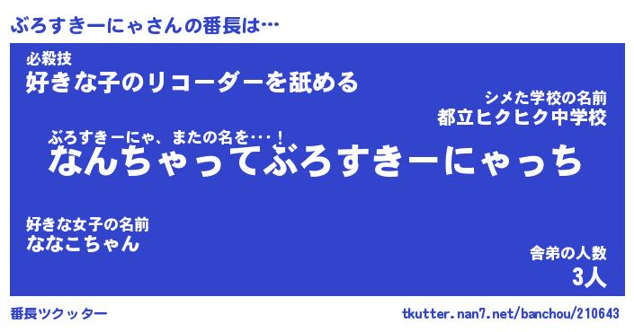 | 肩書あだ名 | 『ぶろすきーにゃ店長』 |