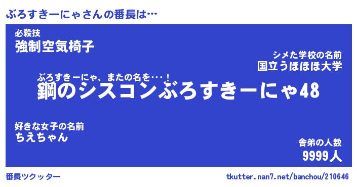 | 恥ずかしいあだ名 | 『プリティーぶろすきーにゃ』『ぶろちん』 |