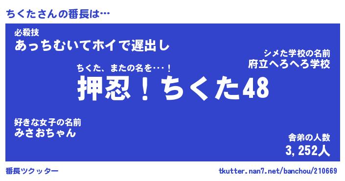 | ヒーロー風カッコイイあだ名 | 『スーパーチクタ』『ウルトラちくたマン』 |