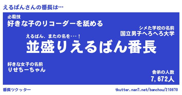 | 意味不明あだ名 | 『ペロリンえるばん』『永久保存えるばん』 |