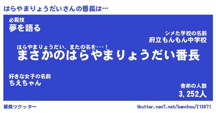 | 胡散臭い通販商品みたいなあだ名 | 『必ず成功するブレスレット…その名も「はらやまりょうだい」』 |