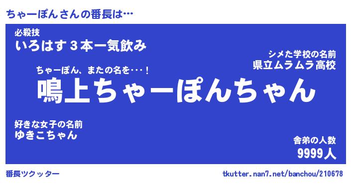 | ヒーロー風カッコイイあだ名 | 『スーパーチャーポン』『天弓騎士チャ』 |
