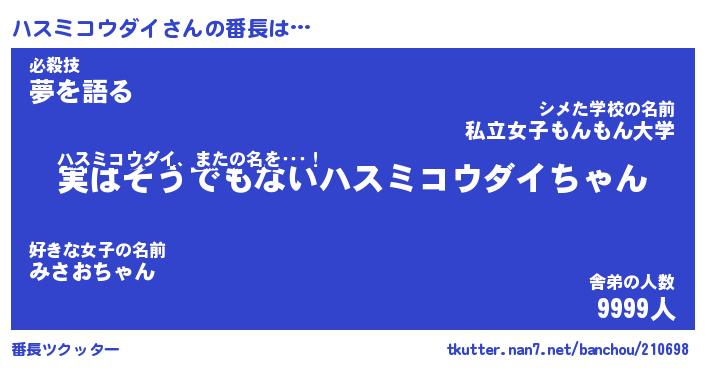 | ヒーロー風カッコイイあだ名 | 『スーパーハスミコウダイ』 |