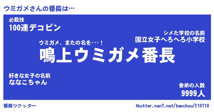 | ヒーロー風カッコイイあだ名 | 『スーパーウミガメ』『幻影騎士ウミ』 |