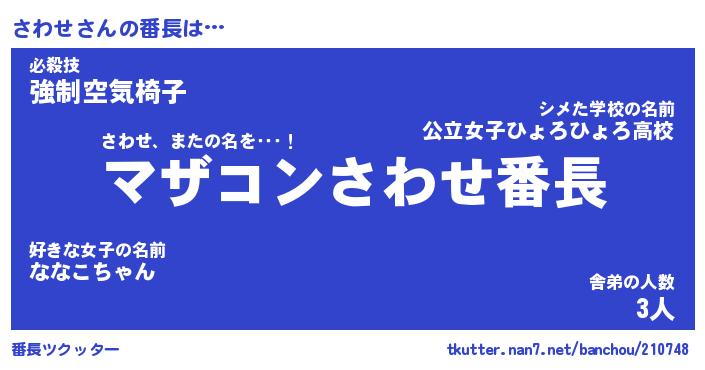 | 肩書あだ名 | 『さわせ御曹司』『さわせ総理大臣』 |
