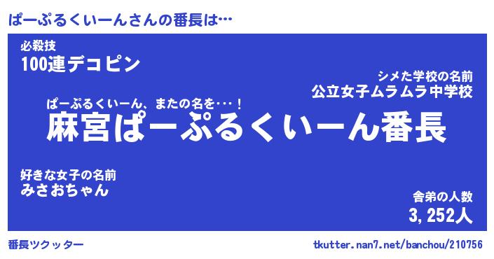 | ヘコむあだ名 | 『ぱーもー』『つくし』『ぱーお』 |