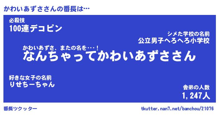 | 胡散臭い通販商品みたいなあだ名 | 『必ず成功する霊験あらたかなお札…その名も「かわいあずさ」』 |