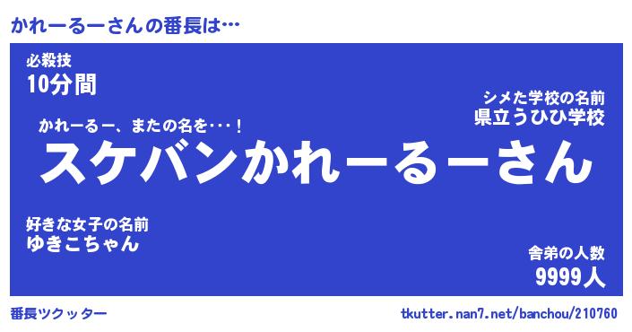 | 伝説のあだ名 | 『不死鳥のスナイパーかれーるー』 |