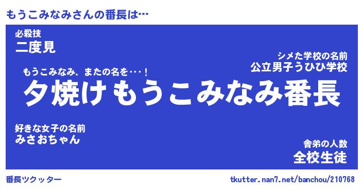 | ポケモン風あだ名 | 『モウチュウ』『モウコダネ』 |