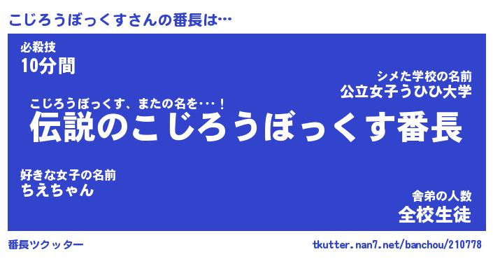| 伝説のあだ名 | 『伝説のスナイパーこじろうぼっくす』 |