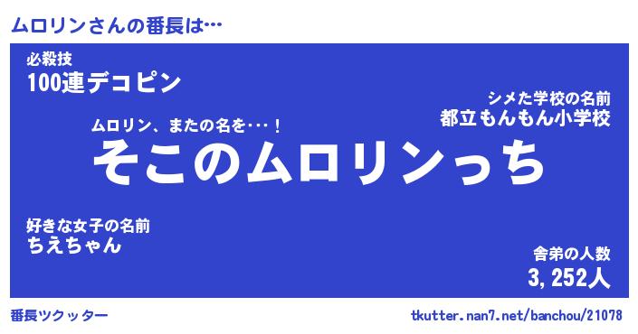 | 男性向けラノベタイトル風あだ名 | 『ムロリンの憂鬱』 |