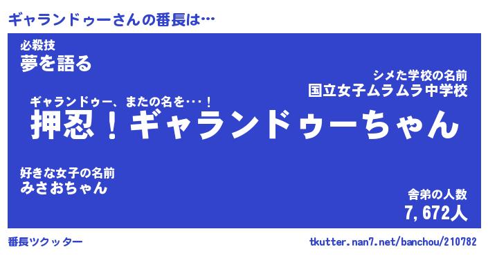 | 伝説のあだ名 | 『封印されしスナイパーギャランドゥー』 |