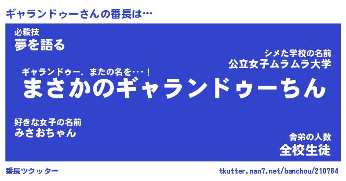 | 伝説のあだ名 | 『伝説のスナイパーギャランドゥー』 |