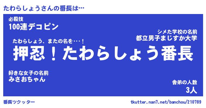 | ヒーロー風カッコイイあだ名 | 『スーパータワラショウ』『天弓騎士タワ』 |