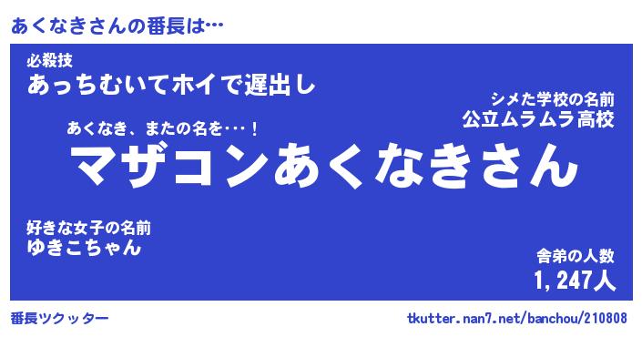 | ヘコむあだ名 | 『あくにー』『レバニラ』『あくを』 |