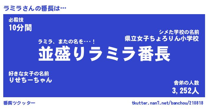 | ヘコむあだ名 | 『ラミもー』『牛乳』『ラミ太郎』 |