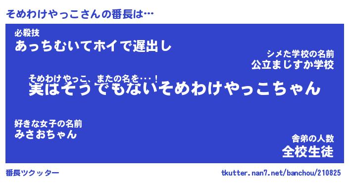| 恥ずかしいあだ名 | 『プリティーそめわけやっこ』『そめちん』 |