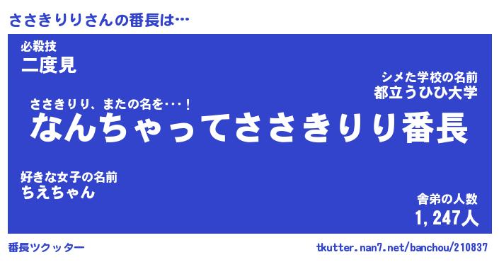 | ヘコむあだ名 | 『ささにー』『酢こんぶ』『ささ太郎』 |