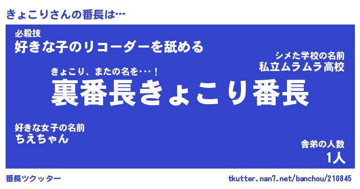 | ファンタジー風あだ名 | 『キョフェル』『エターナルキョコリー』 |