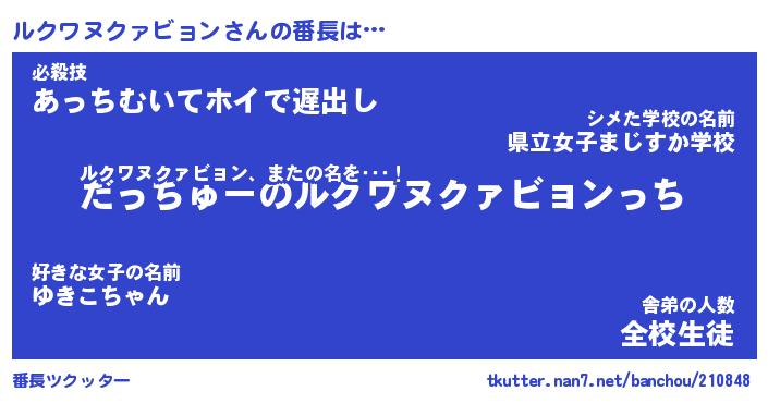 | 男性向けラノベタイトル風あだ名 | 『ルクワヌクァビョンの憂鬱』 |