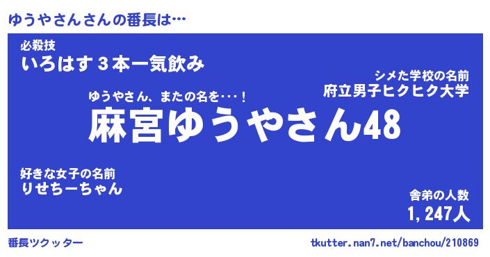 | ヒーロー風カッコイイあだ名 | 『スーパーユウヤサン』『幻影騎士ユウ』 |