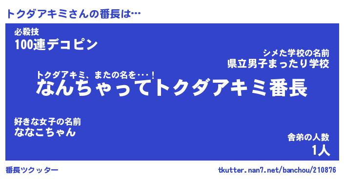 | ポケモン風あだ名 | 『トクチュウ』『トクダダネ』 |