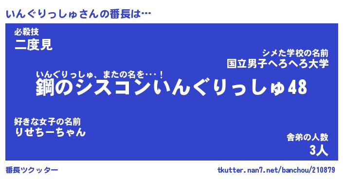 | 伝説のあだ名 | 『封印されしスナイパーいんぐりっしゅ』 |