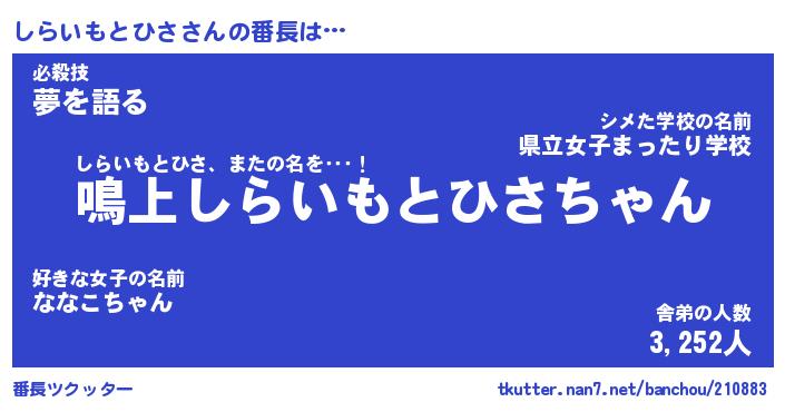 | 男性向けラノベタイトル風あだ名 | 『シライモトヒサアートオンライン』 |