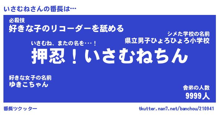 | 意味不明あだ名 | 『ペロリンいさむね』『永久保存いさむね』 |