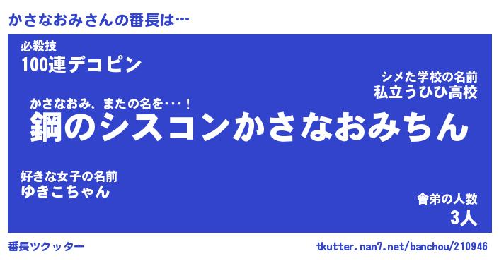 | 伝説のあだ名 | 『封印されし竜騎士かさなおみ』 |