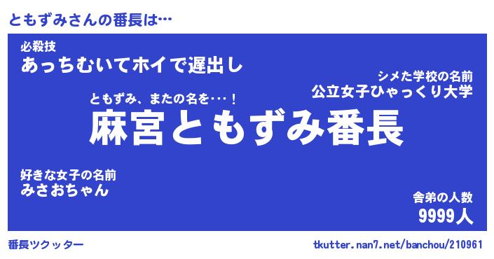 | 肩書あだ名 | 『ともずみCEO』『ともずみ総理大臣』 |