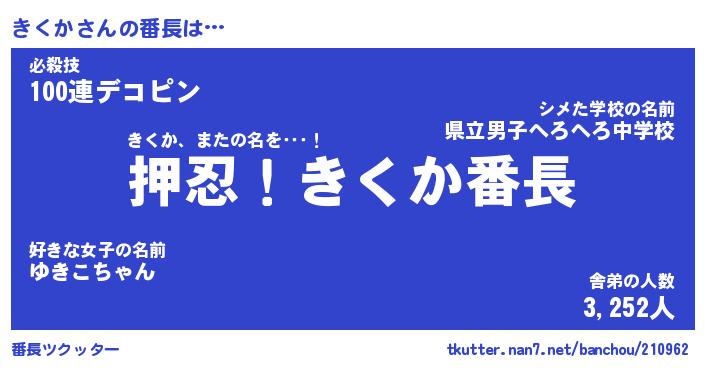 | ピコ太郎風あだ名 | 『キコ三郎』『ピキ太郎』『キク五郎』 |