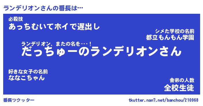 | 男性向けラノベタイトル風あだ名 | 『ランデリオンの憂鬱』 |