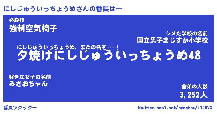 | ポケモン風あだ名 | 『ニシチュウ』『ニシジダネ』 |