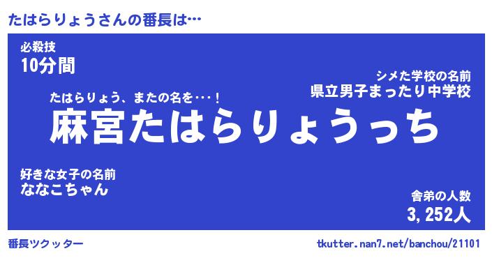 | 男性向けラノベタイトル風あだ名 | 『タハラリョウアートオンライン』 |