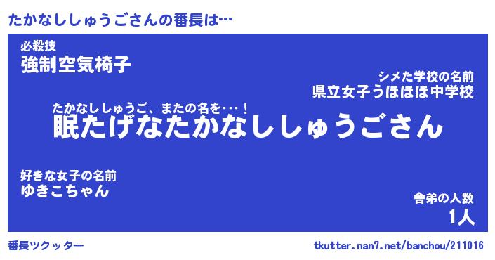 | 意味不明あだ名 | 『ペロリンたかなししゅうご』 |