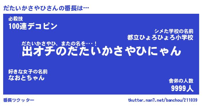 | 肩書あだ名 | 『だたいかさやひ店長』 |