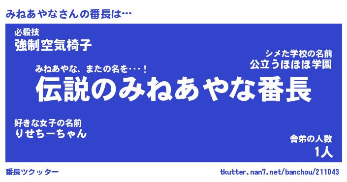 | ヒーロー風カッコイイあだ名 | 『スーパーミネアヤナ』『黄金騎士ミネ』 |
