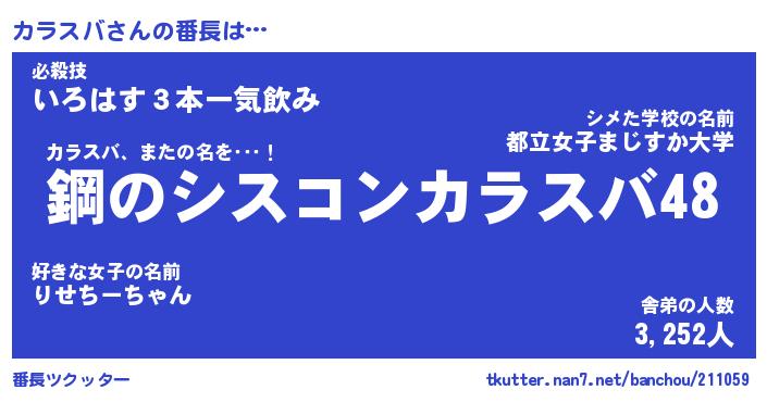 | 意味不明あだ名 | 『ペロリンカラスバ』『永久保存カラスバ』 |