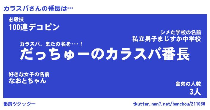 | 意味不明あだ名 | 『ペロリンカラスバ』『永久保存カラスバ』 |