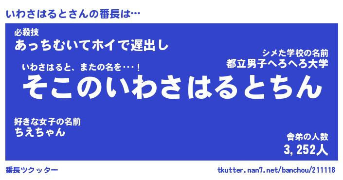 | ヒーロー風カッコイイあだ名 | 『スーパーイワサハルト』『幻影騎士イワ』 |