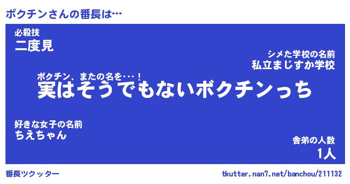 | ファンタジー風あだ名 | 『ボクフェル』『エターナルボクチンー』 |