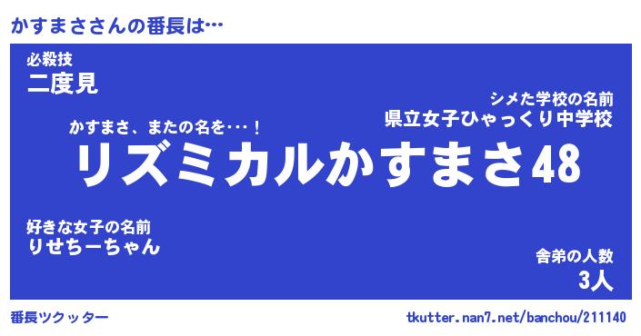 | 意味不明あだ名 | 『ペロリンかすまさ』『永久保存かすまさ』 |