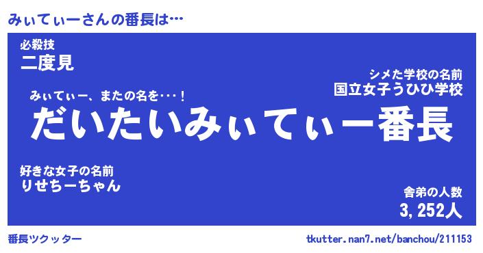 | ヘコむあだ名 | 『みぃにー』『酢こんぶ』『みぃを』 |