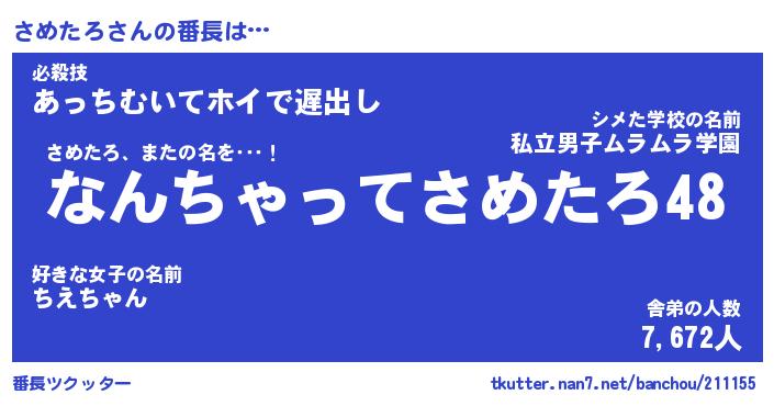 | ファンタジー風あだ名 | 『サメフェル』『エターナルサメタロー』 |