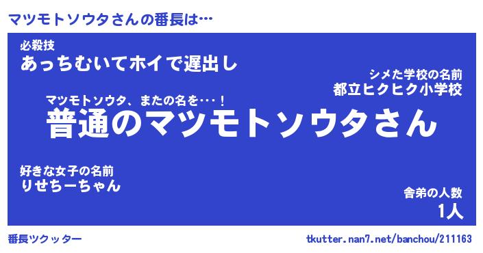 | ツイッター | マツモトソウタさんのツイッターID『katatsumuri_kun』 |