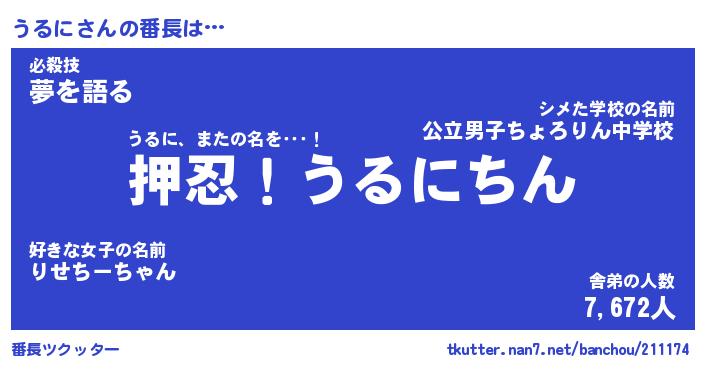 | 意味不明あだ名 | 『ペロリンうるに』『うるにフォーエバー』 |