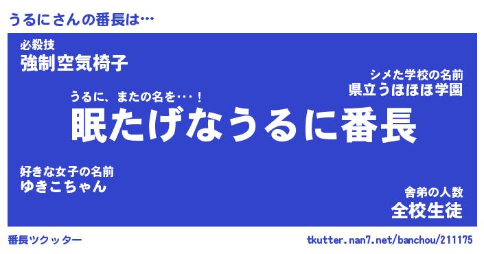 | 伝説のあだ名 | 『封印されしスナイパーうるに』 |